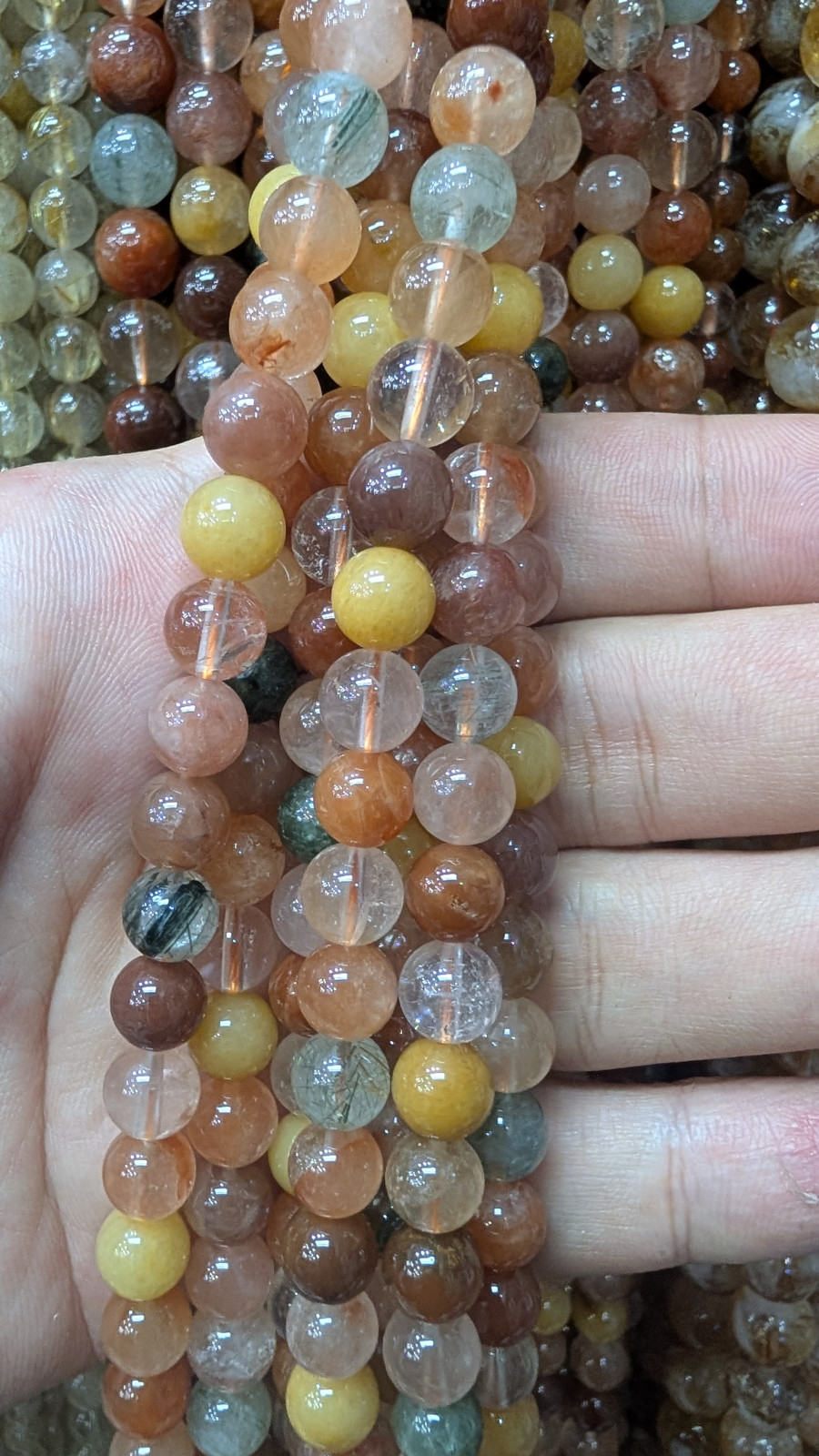 Tags: five silk, multi, rutilated, quartz, long, strand, jewelry, gemstone, necklace, bracelet, handmade