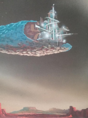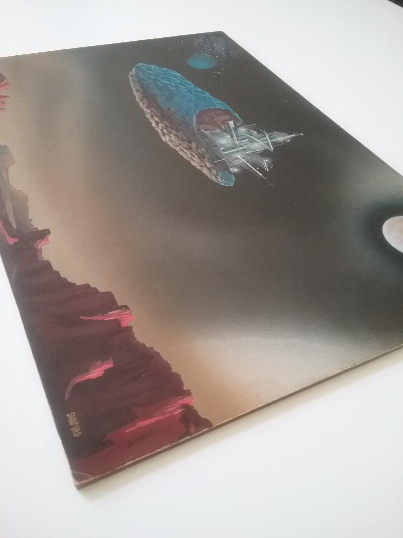 This piece showcases Samuel Shapiro's futuristic foresight, depicting a self-sustaining, man-made city nestled within the cradle of an asteroid. The scene captures this colossal spacefaring structure as it serenely hovers above a desolate planet, evoking a sense of wonder and the endless possibilities of human ingenuity.