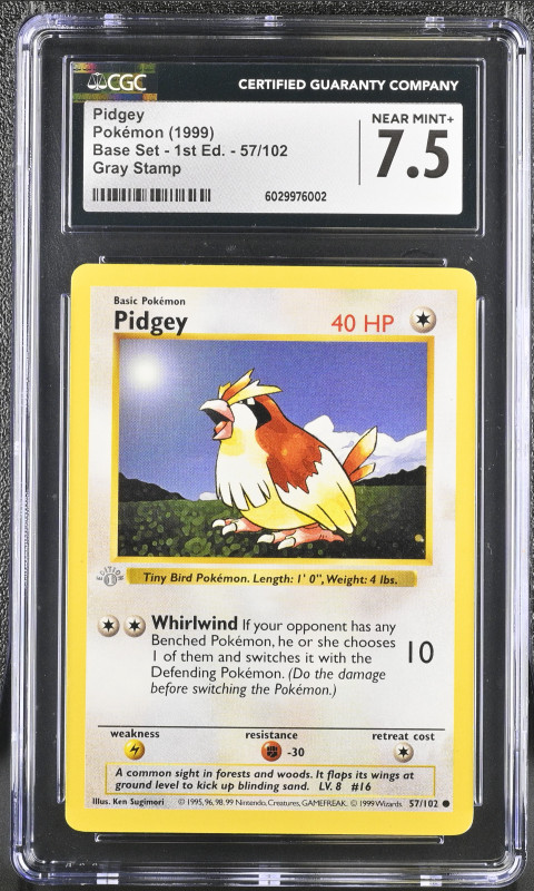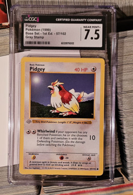 I am selling my CGC 7.5 gray stamp 1st edition pidgey pokemon card. This card is from the pokemon base set.