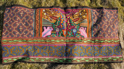 Fine embroidery, handwoven Shipibo tapestry. Real. Plant-based dyes