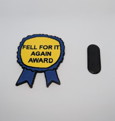 3D Printed "Fell for it Again Award" magnet