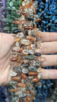 Five Silk - Multicolor Rutilated Quartz - Wholesale Chip Gemstone Long Strand