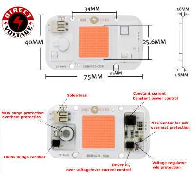 10PCS Driverless COB LED Grow Light 50W 110V Full Spectrum - Blue - Warm - White