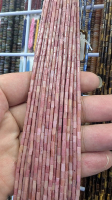 Rhodonite - Wholesale 2mm Tube Gemstone Crystal Beads
