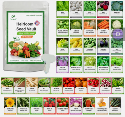 Heirloom Vegetable Seeds Survival Garden Kit - Over 18,000 Seeds, 39 Varieties