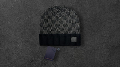 Louis Vuitton Dark Grey Checkered Beanie One Size