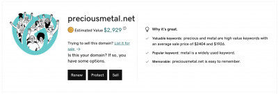 PreciousMetal.net domain (aged 24 years, continuously registered since 2001)