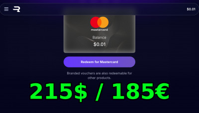 NoFee 215$/185€ Redeemed Rewarble/Mastercard 3DS Global Anonymous
