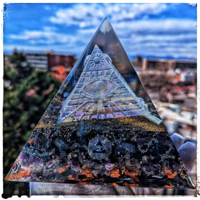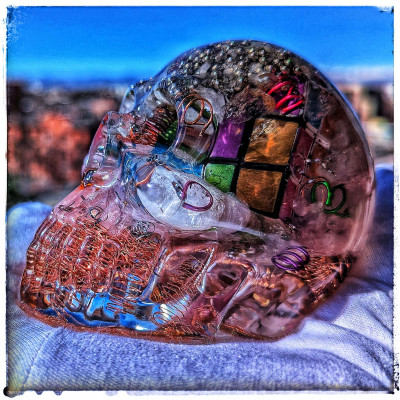 Black Obsidian Orgonite Skull with Compass Rose